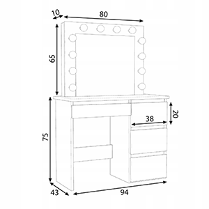 - Fésülködőasztal tükörrel és LED világítással